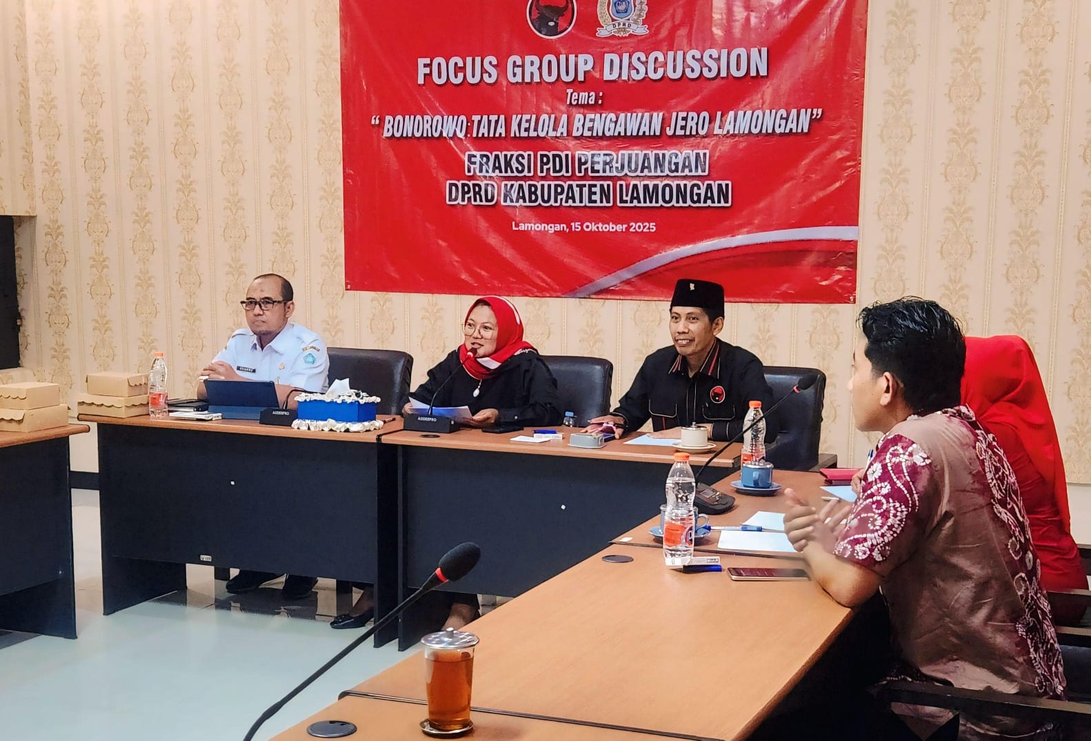 Lamongan – Fraksi PDI Perjuangan DPRD Lamongan bergerak cepat mencari solusi konkret terkait persoalan banjir dan kekeringan ekstrem di wilayah Bengawan Jero. Untuk pertama kalinya, Fraksi PDIP menggelar Focus Group Discussion (FGD) bertema “Bonorowo: Tata Kelola Bengawan Jero Lamongan” di ruang Komisi B, Rabu (15/10/2025).