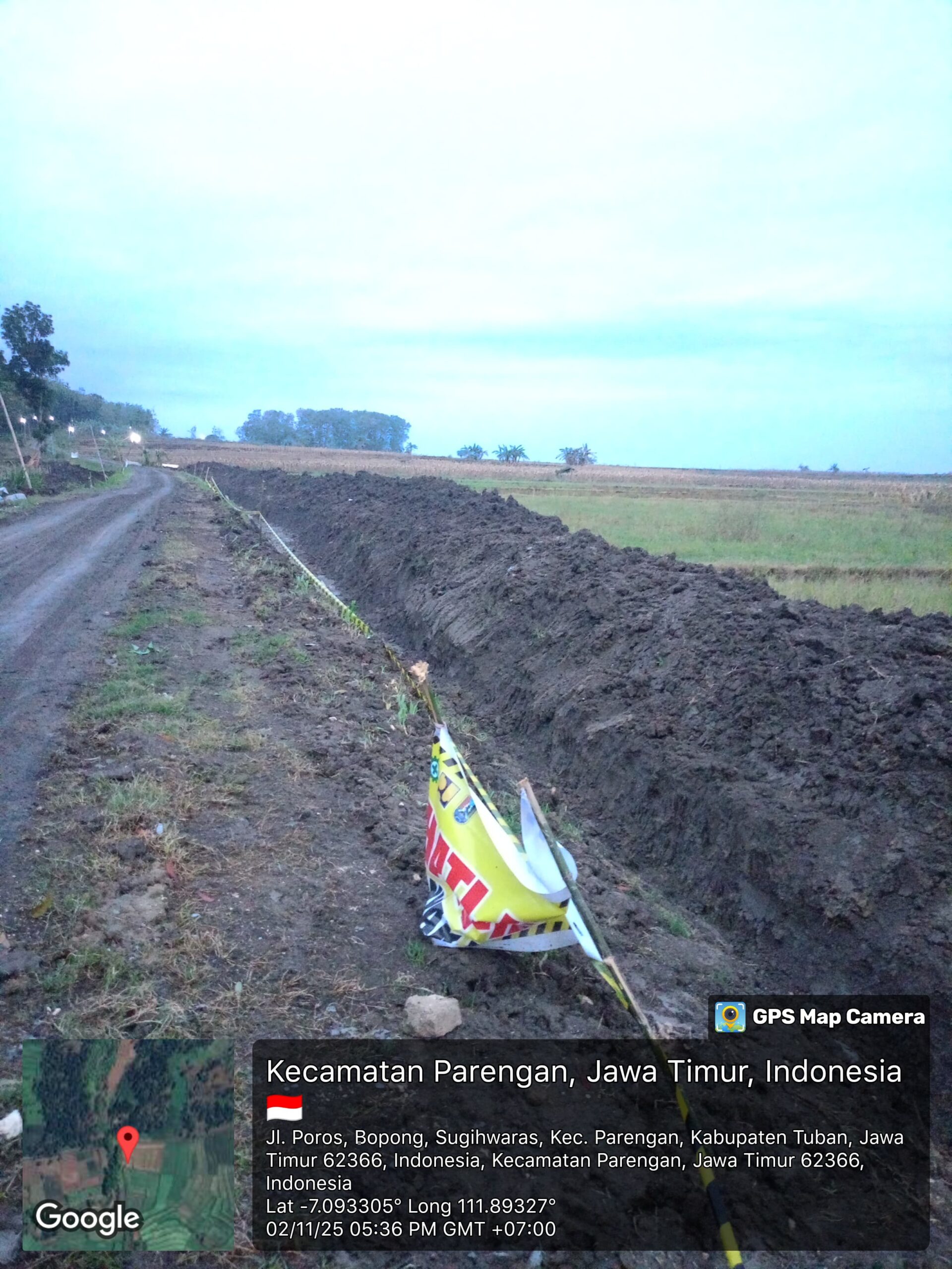 Tuban — Proyek pembangunan Tembok Penahan Tanah (TPT) di wilayah desa mbopong Desa Sugiwaras Kecamatan Parengan, Kabupaten Tuban, Jawa Timur, mulai menuai perhatian warga. Berdasarkan pantauan Media aliansirakyat di lapangan, pekerjaan tengah berlangsung di sisi jalan poros desa dengan kondisi tanah galian yang masih terisi air.