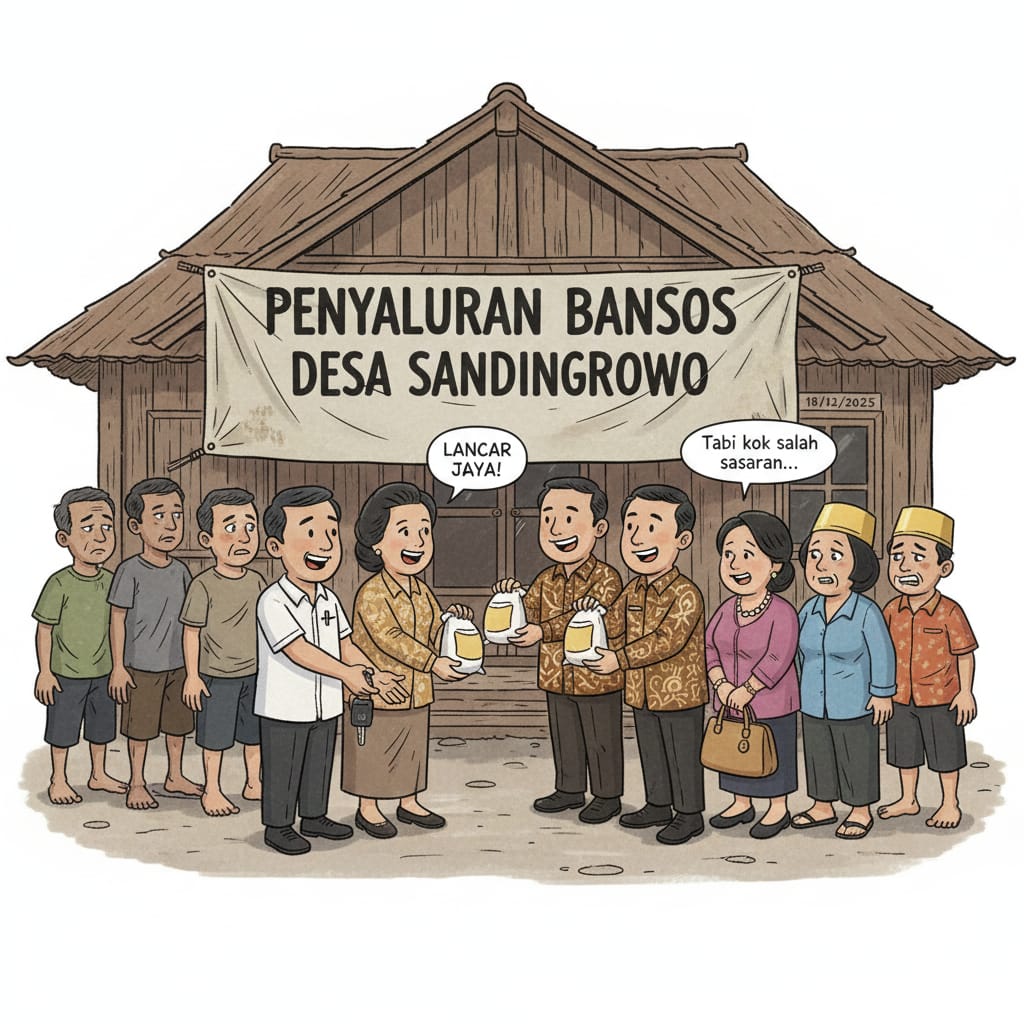 Meski secara teknis pelaksanaan pembagian bantuan berupa beras dan minyak goreng berlangsung tertib dan lancar di Balai Pendopo Desa Sandingrowo hingga sore hari, substansi keadilan dalam penyaluran justru dipertanyakan. Warga menilai, kelancaran acara tidak dapat dijadikan tolok ukur keberhasilan apabila bantuan tidak benar-benar menyentuh masyarakat yang membutuhkan.