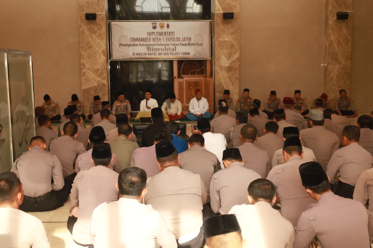 TUBAN – Polres Tuban menggelar kegiatan Pembinaan Rohani dan Mental (Binrohtal) yang berlangsung di Masjid Baitul Mu’min Mapolres setempat, kamis (22/01/2026).