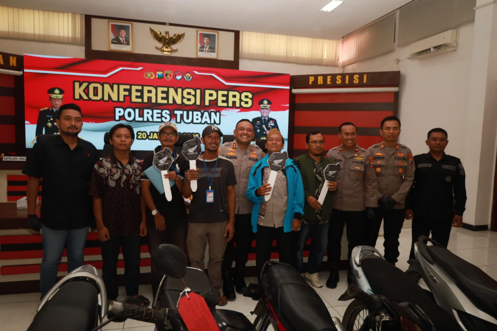 Dalam kesempatan tersebut Polres Tuban tidak hanya menyampaikan keberhasilan namun juga melakukan pengembalian barang bukti sepeda motor tersebut kepada pemiliknya yang ikut dihadirkan dalam konferensi pers tersebut.