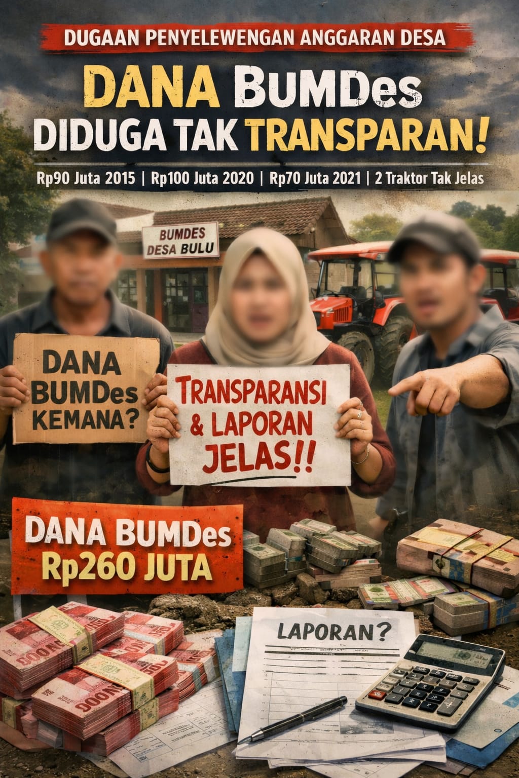 Bojonegoro, Aliansirakyatnews.com – Pengelolaan Badan Usaha Milik Desa (BUMDes) Desa Bulu, Kecamatan Sugiwaras, Kabupaten Bojonegoro, kembali menuai sorotan warga. Dana desa yang dikucurkan sejak 2015 hingga 2021 dengan total Rp260 juta, ditambah aset berupa dua unit traktor, diduga tidak dikelola secara transparan dan akuntabel.