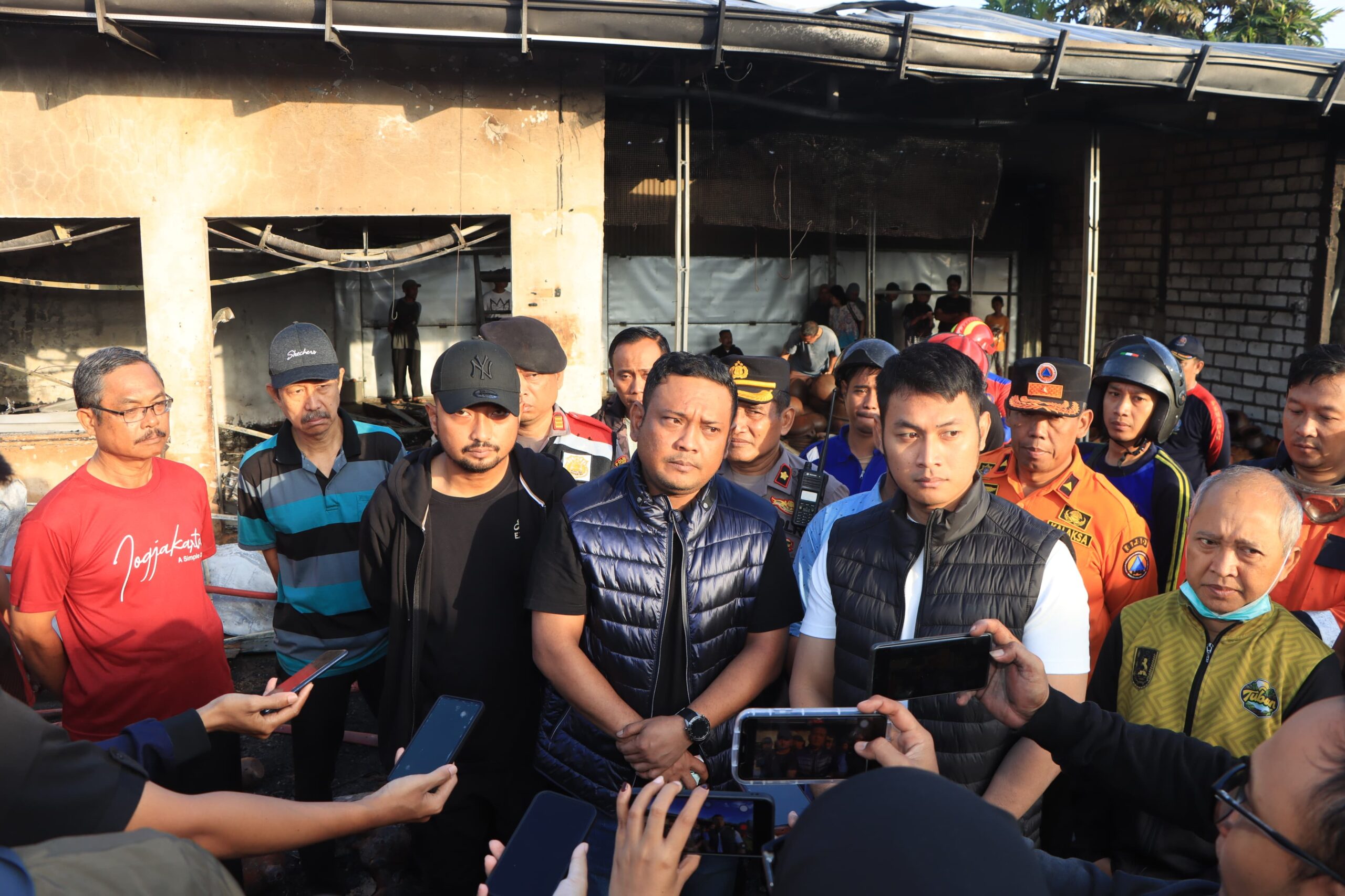 TUBAN – Kapolres Tuban AKBP Alaiddin, S.H., S.I.K., M.H., bersama Bupati Tuban Aditya Halindra Faridzky, S.E., meninjau langsung lokasi kebakaran di Pasar Baru Tuban pada kamis (22/04) pagi.