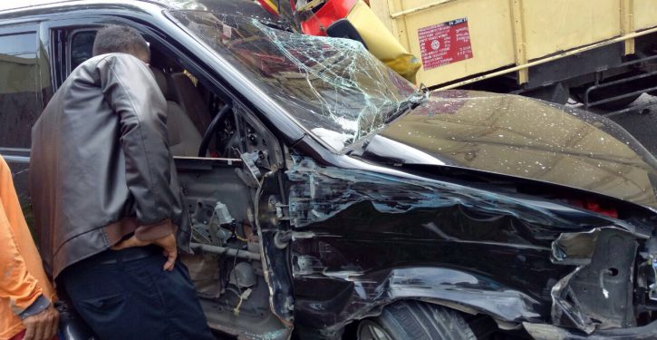 Mobdin Camat Sugihwaras Ringsek Dihantam Truk Rosok