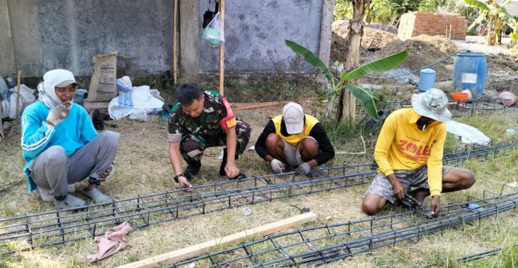 Tanamkan Jiwa Gotong Royong Babinsa Luangkan Waktu Bantu Warga Bangun Rumah