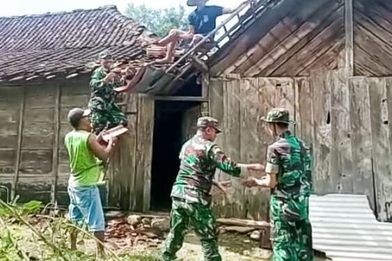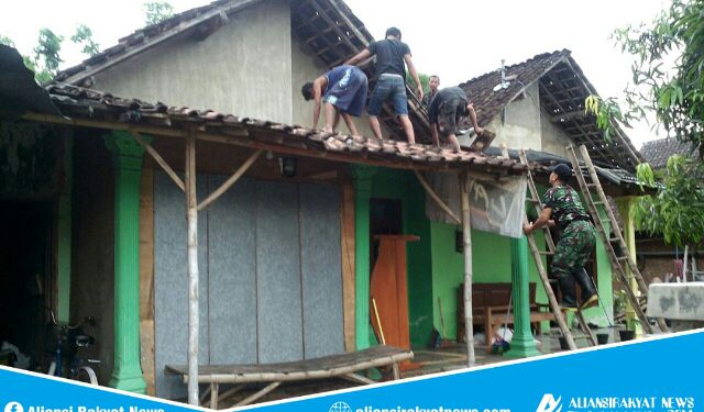 Pasca bencana Angin Kencang, Babinsa Posramil Sekar Bojonegoro bantu Perbaiki Rumah Warga